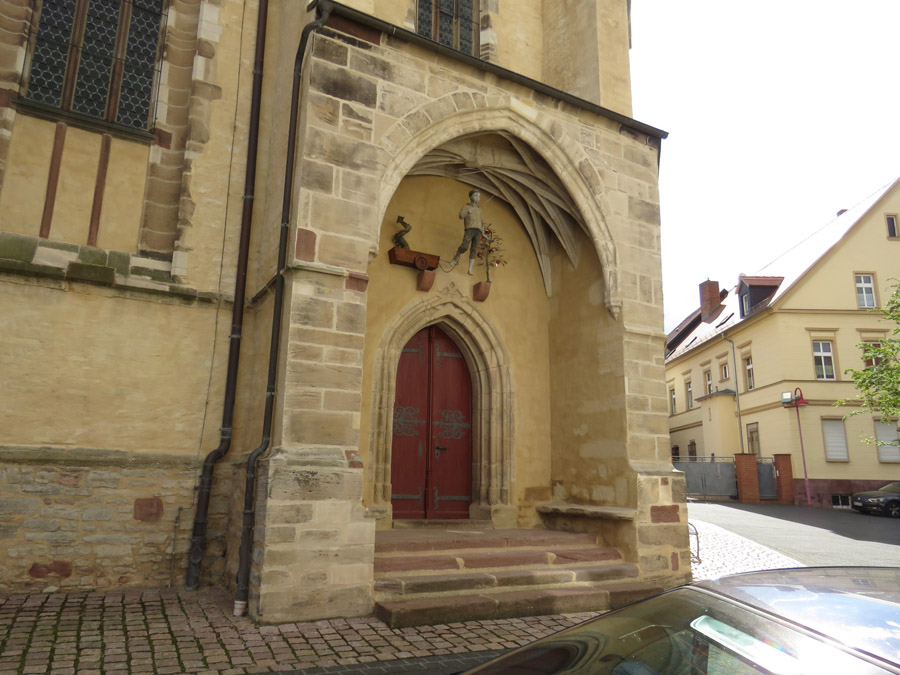 Die Figur über dem Kircheneingang soll Luther darstellen.
