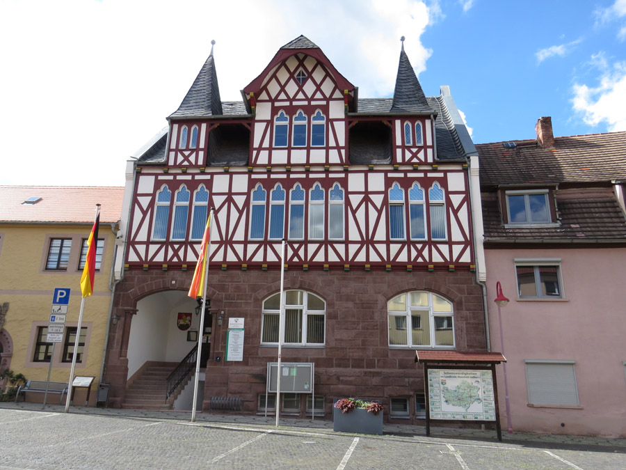 Platz gegenüber steht das Rathaus von Mansfeld.