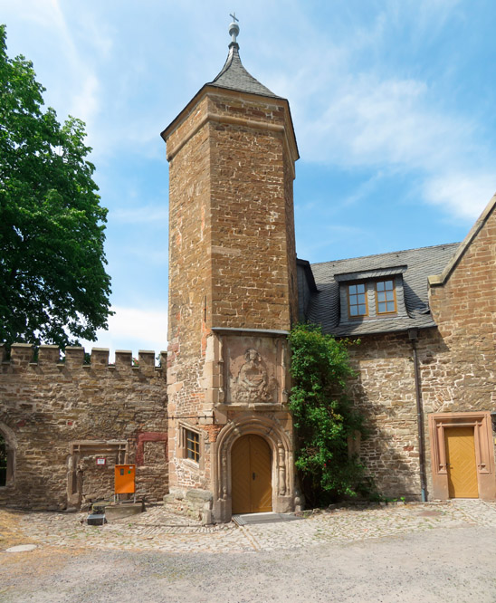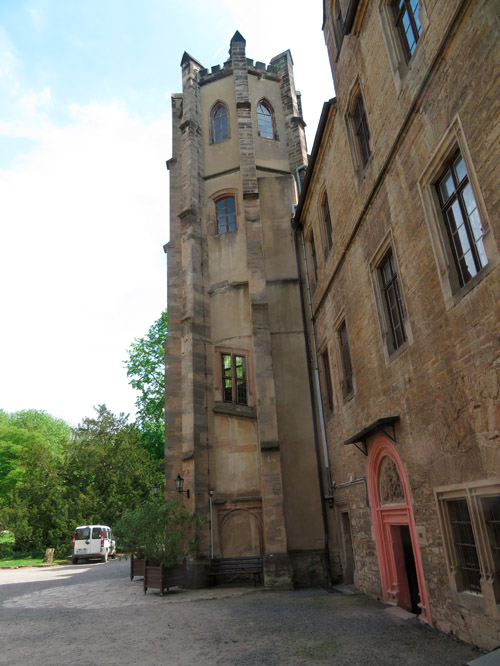 und der Turm stehen auf dem Schlosshof.