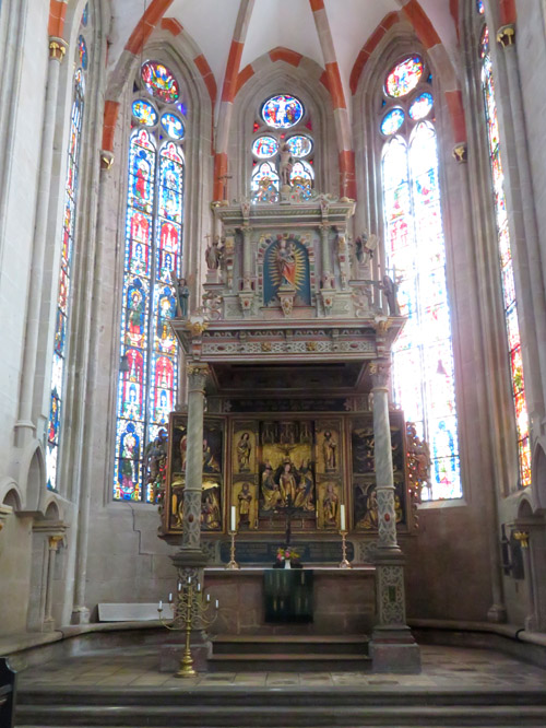 Der "spätgotische Schnitzaltar mit einer Marienkrönung,"
