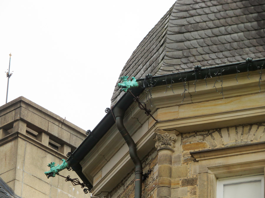 Wasserspeier halten das ablaufende Regenwasser vom Haus fern.