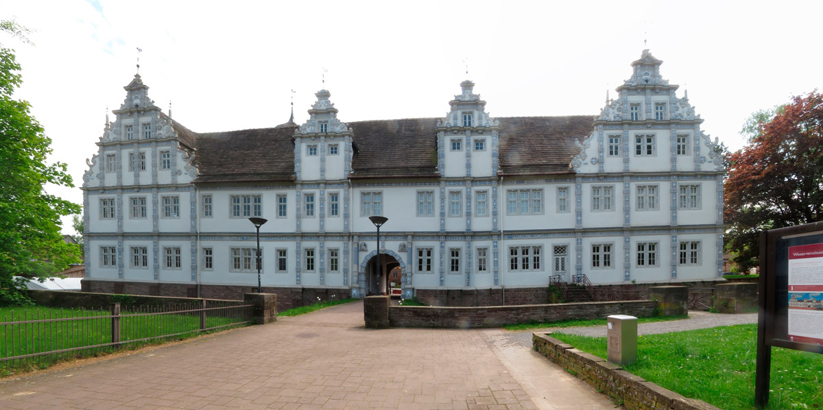 steht dieses Schloss. Das Weserrenaissancegebäude stammt von 1603 und