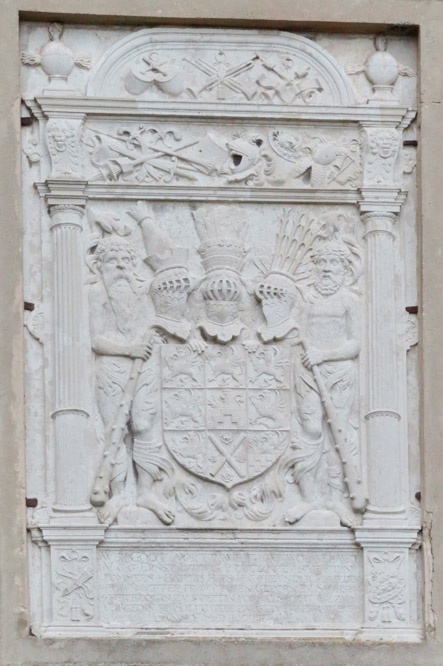 Am Hauptportal erkennt man das Wappen Pommerns