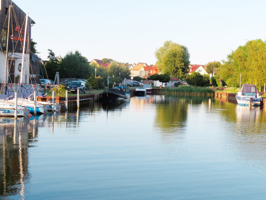 Freizeikapitäne ist der Sportboothafen am Achterwasser angelegt.