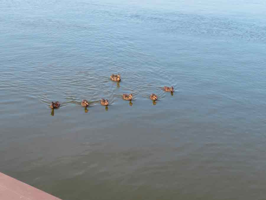 Mammi Ente schickt ihre Kinder vor.