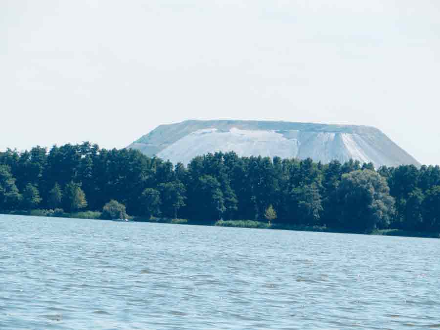 Meer aus sieht man die 140 m hohe Abraumhalde des Kaliabbaus bei