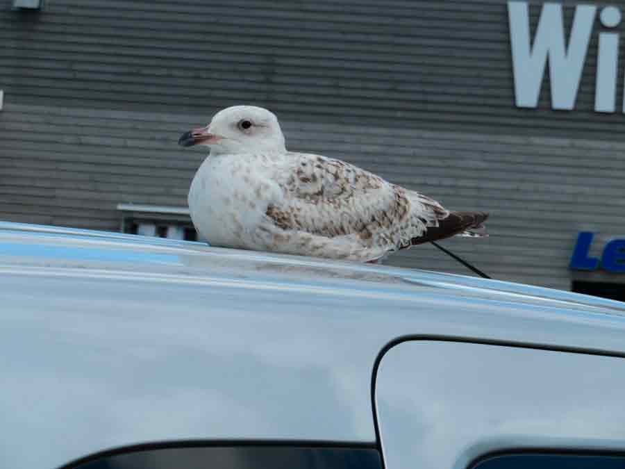 Die Jungmöwe hat es sich dreist auf meinem Auto gemütlich gemacht.