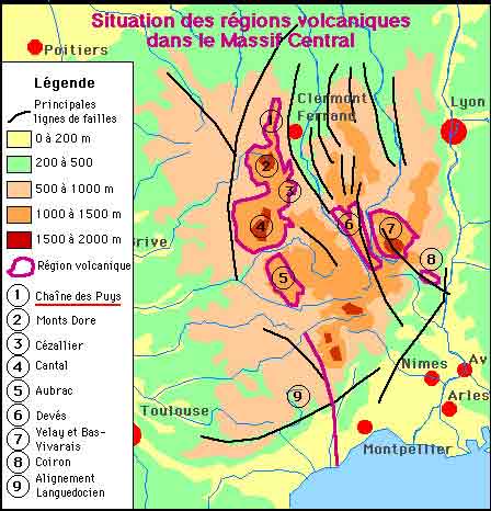 Reihe (Chain) parallel zur Limagne-Verwerfung. Der bekannteste und höchste Vulkan