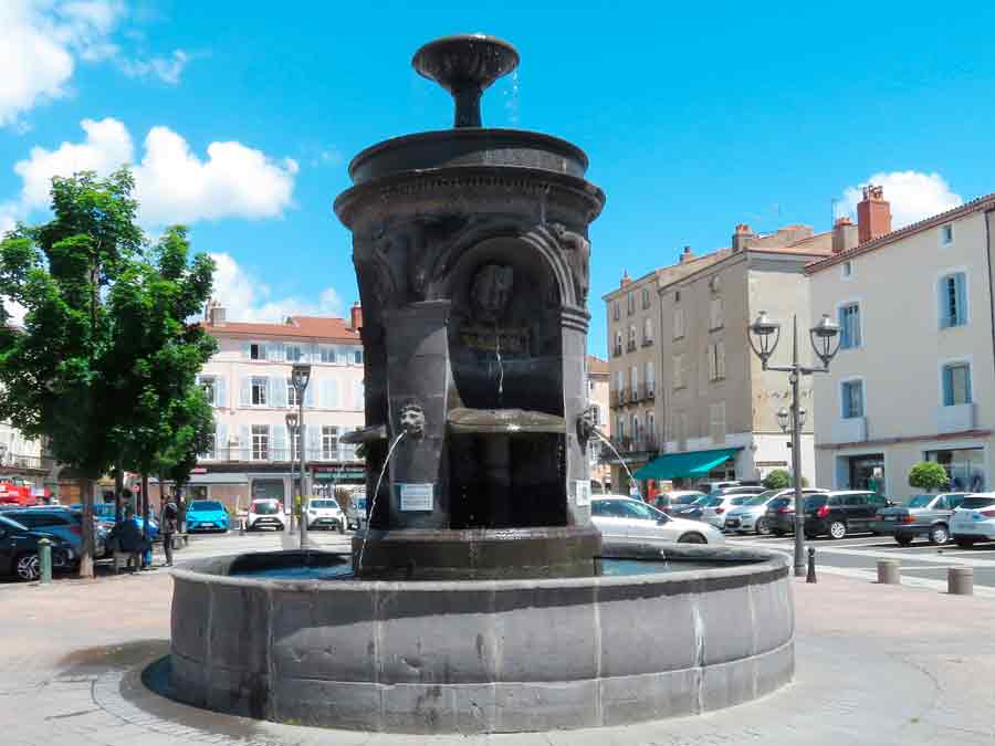 Im gleichen Farbton (Volvic-Stein?) steht der Brunnen am Platz der