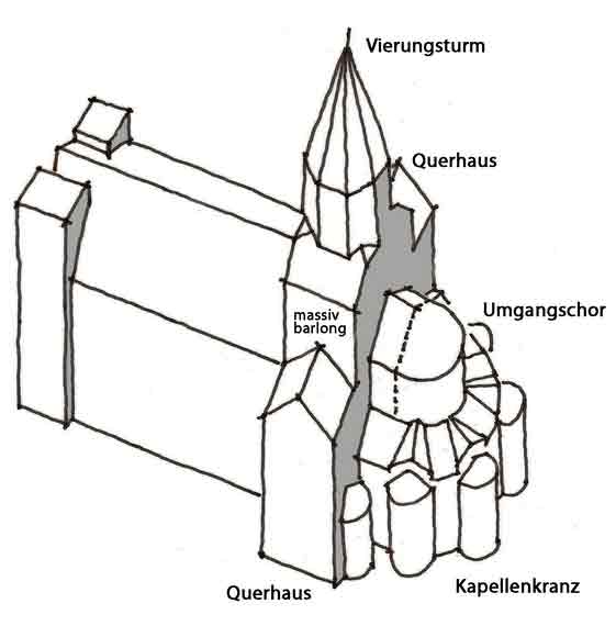 auvergnatische Pyramide, ein Zusammenspiel von Chor, Querhaus und