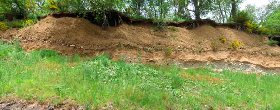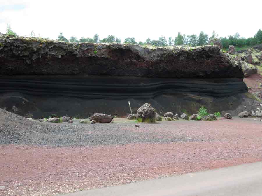 Die helle Schicht rechts unten ist Bimsstein. Das Band