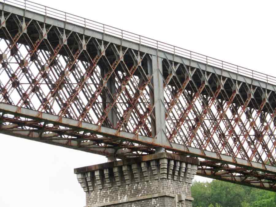 Fachwerk selber aus Stahl. Die Höhe der Brücke beträgt von der
