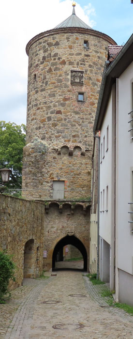Wehrgang aus, die Tür an der Straße entstand später. Noch heute gibt es