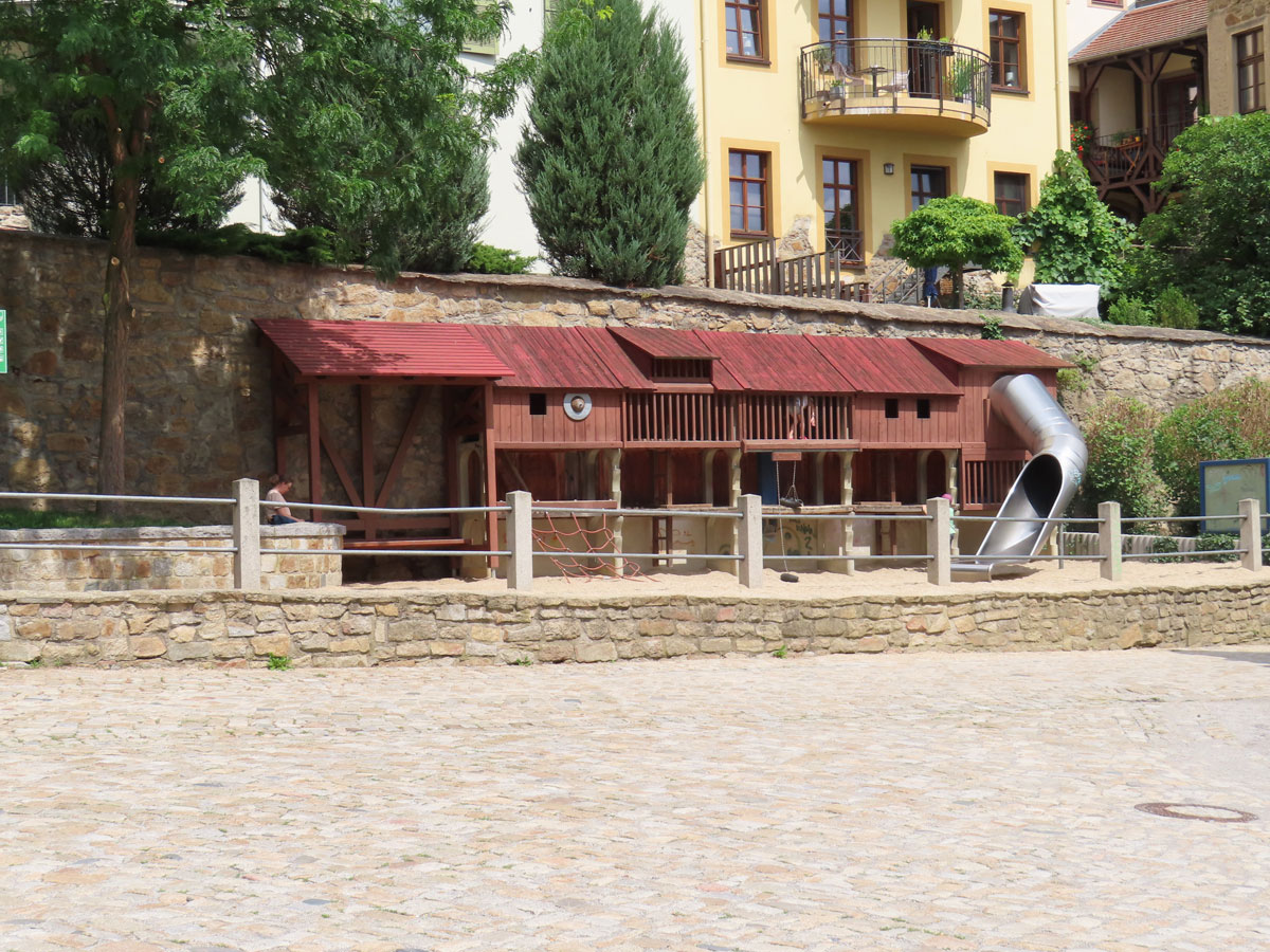 Und zum Abschluss ein Spielplatz an der Stadtmauer.